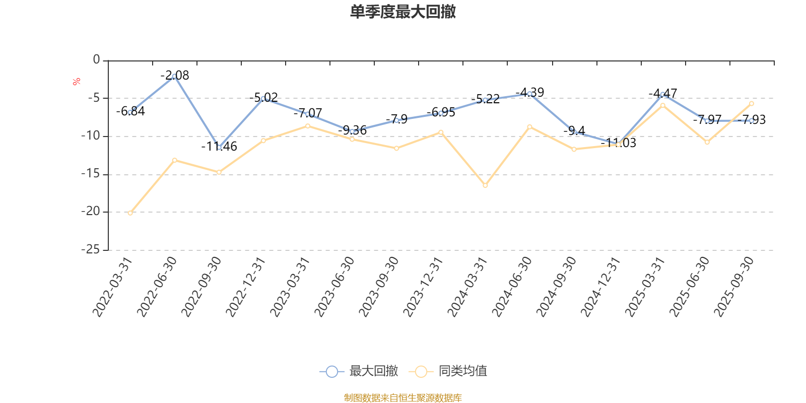 截至10月29日,基金近三年最大回撤为28.12%,同类可比基金排名89/513。单季度最大回撤出现在2022年三季度,为11.46%。