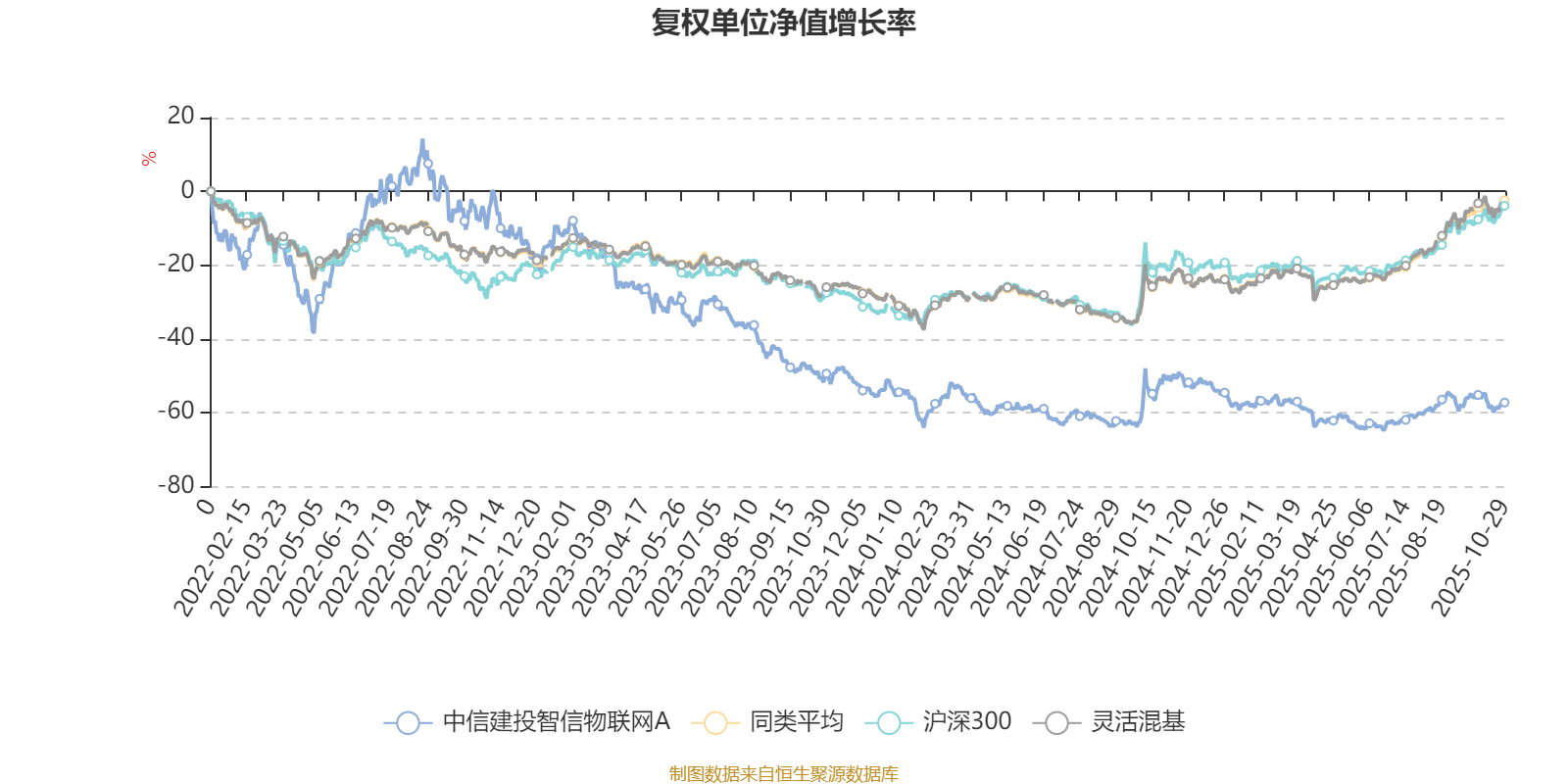 截至10月29日,中信建投智信物联网A近三个月复权单位净值增长率为6.80%,位于同类可比基金854/1287;近半年复权单位净值增长率为12.36%,位于同类可比基金981/1287;近一年复权单位净值增长率为-12.75%,位于同类可比基金1284/1287;近三年复权单位净值增长率为-53.61%,位于同类可比基金1285/1286。