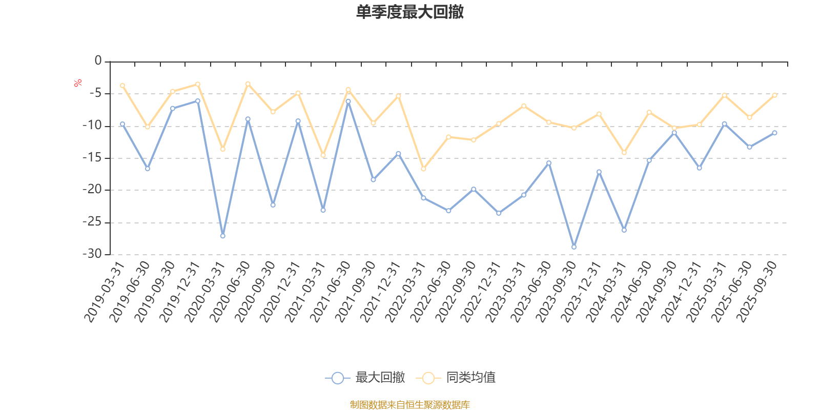 截至10月29日,基金近三年最大回撤为64.88%,同类可比基金排名1271/1274。单季度最大回撤出现在2023年三季度,为28.84%。