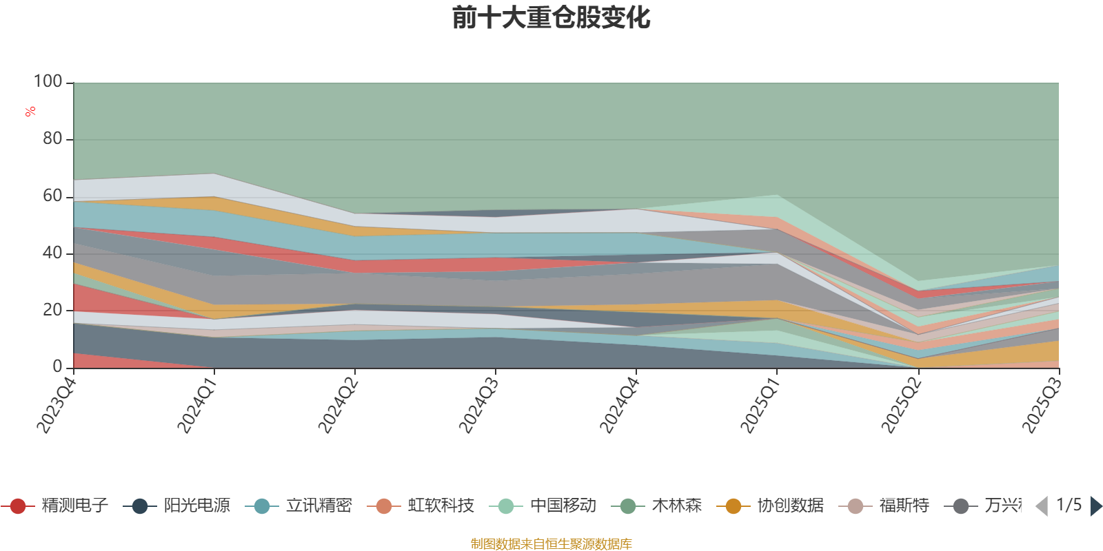 基金管理人在三季报中表示,本季度内,本产品维持了高仓位,主要围绕 AI 方向重点配置,包括 AI 硬件和 AI 应用等。关于 AI,我们继续看好其发展趋势,节奏上可能会体现不同细分方向的轮动和变化,比如三季度表现最好的是海外算力链,我们认为后续国内 AI 硬件和 AI 应用也可能会有较好表现。展望四季度,我们对 A 股整体乐观,但领涨方向可能会发生变化,涨幅和估值过高的个股也可能会有回调,我们将密切跟踪市场,积极调整持仓结构。