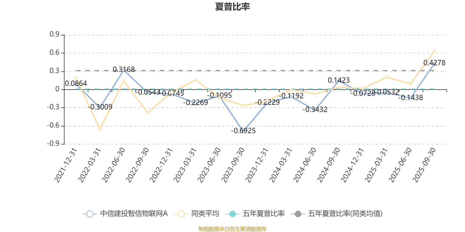 截至9月30日,基金近三年夏普比率为-0.4094,位于同类可比基金1273/1285。
