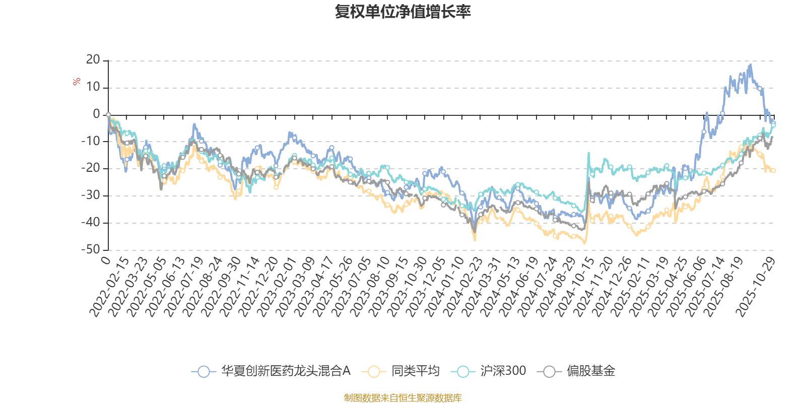 截至10月29日,华夏创新医药龙头混合A近三个月复权单位净值增长率为-15.35%,位于同类可比基金89/106;近半年复权单位净值增长率为21.01%,位于同类可比基金50/104;近一年复权单位净值增长率为40.49%,位于同类可比基金24/101;近三年复权单位净值增长率为18.15%,位于同类可比基金20/75。