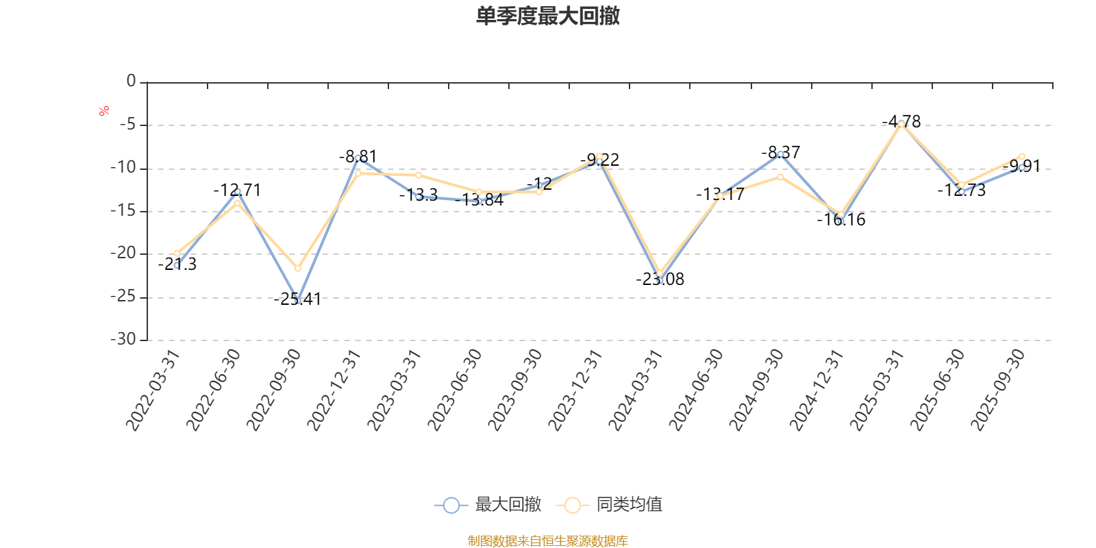截至10月29日,基金近三年最大回撤为38.14%,同类可比基金排名34/75。单季度最大回撤出现在2022年三季度,为25.41%。