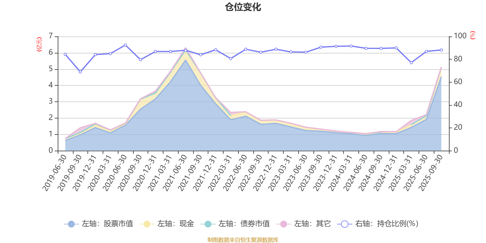 据定期报告数据统计,近三年平均股票仓位为88.04%,同类平均为85.66%。2020年上半年末基金达到92.48%的最高仓位,2019年三季度末最低,为69.02%。