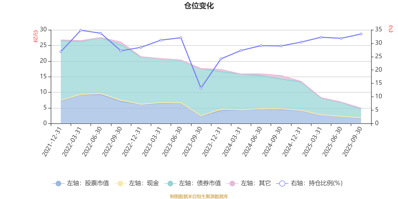 据定期报告数据统计,近三年平均股票仓位为28.53%,同类平均为19.14%。2022年一季度末基金达到34.85%的最高仓位,2023年三季度末最低,为13.23%。