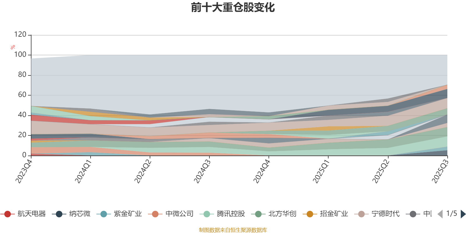 截至2025年三季度末,基金十大重仓股分别是中芯国际、腾讯控股、北方华创、阿里巴巴-W、寒武纪、海光信息、纳芯微、宁德时代、华虹半导体、紫金矿业。