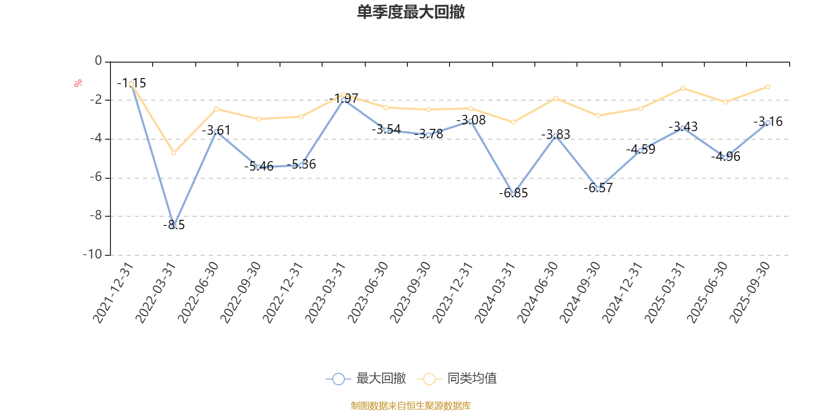 通过所选区间该基金净值增长率分位图,可以观察该基金与同类基金业绩比较情况。图为坐标原点到区间内某时点的净值增长率在同类基金中的分位数。