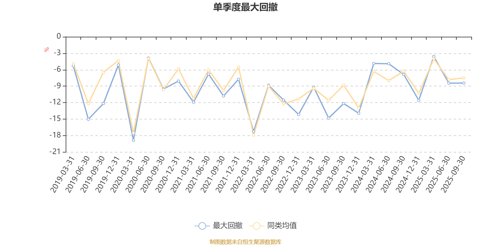 截至10月29日,基金近三年最大回撤为28.19%,同类可比基金排名8/12。单季度最大回撤出现在2020年一季度,为18.85%。