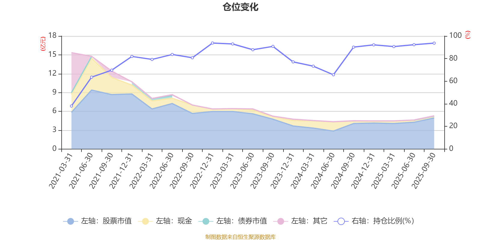 基金管理人在三季报中表示,报告期内,本基金持续关注在全球产业链中具备崛起潜力的优质企业,尤其是新能源、储能后周期等领域,也关注到电动化、智能化大趋势下电动智能汽车渗透率的提升,以及数字经济、人工智能、自主可控、制造装备等产业的发展,并精选具有自主创新优势或潜力的优质上市公司,在有效控制投资组合风险的前提下,通过积极主动的资产配置,获得了超越业绩比较基准的收益。
