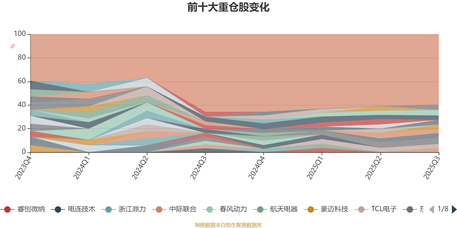 截至2025年三季度末,基金十大重仓股分别是诺诚健华、金诚信、新易盛、大金重工、晶泰控股、德业股份、吉利汽车、TCL电子、中际联合、三生制药。