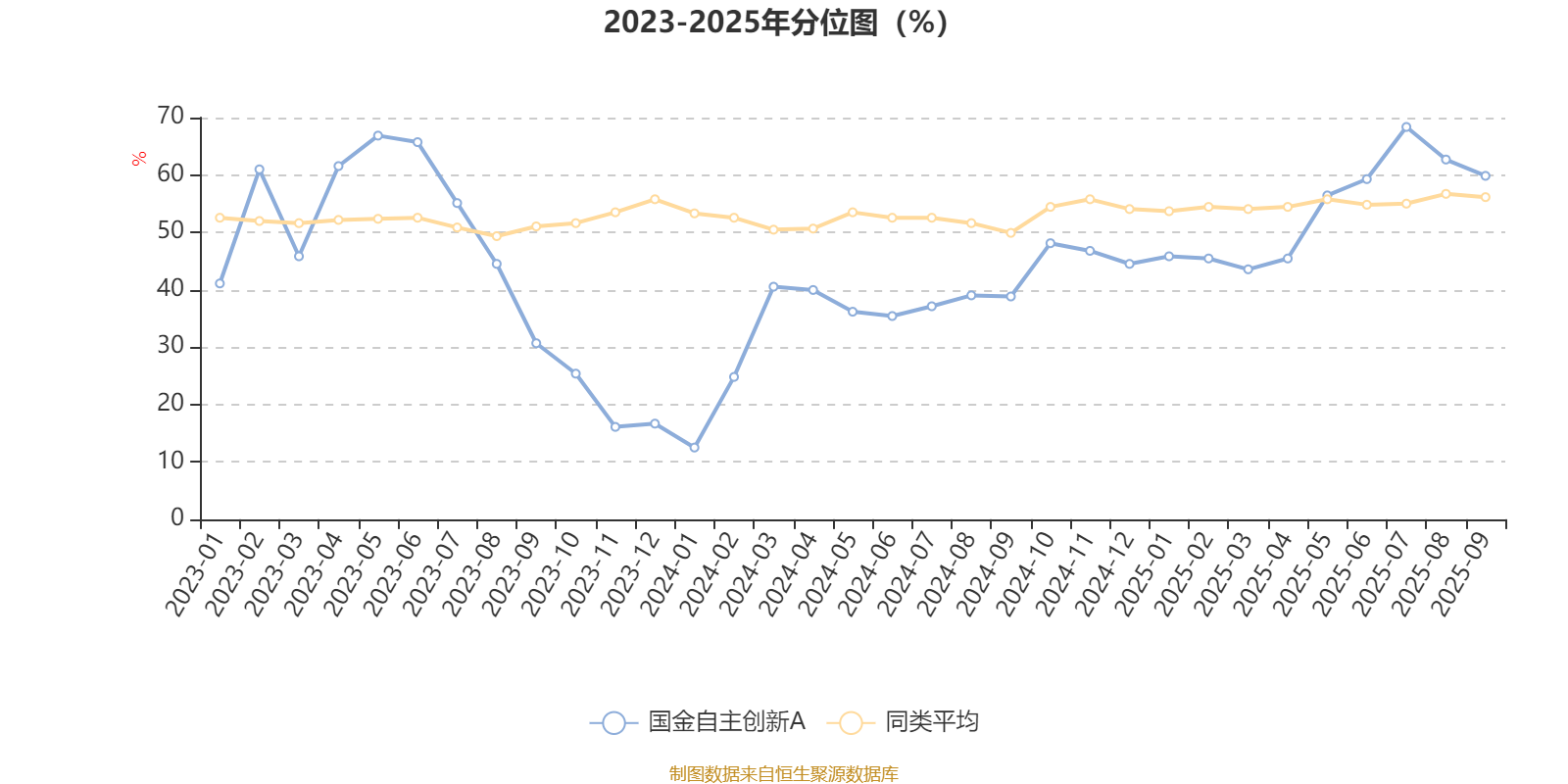 通过所选区间该基金净值增长率分位图,可以观察该基金与同类基金业绩比较情况。图为坐标原点到区间内某时点的净值增长率在同类基金中的分位数。