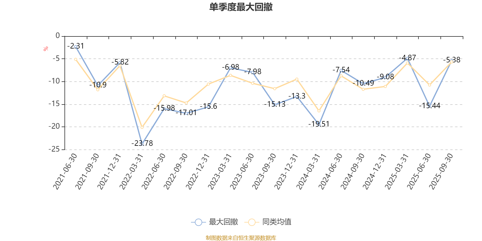 截至10月28日,基金近三年最大回撤为44.4%,同类可比基金排名425/513。单季度最大回撤出现在2022年一季度,为23.78%。