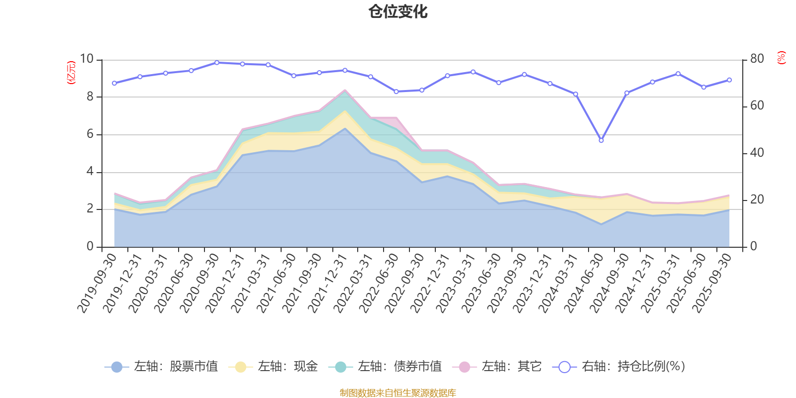 据定期报告数据统计,近三年平均股票仓位为68.54%,同类平均为67.37%。2020年三季度末基金达到78.78%的最高仓位,2024年上半年末最低,为45.54%。
