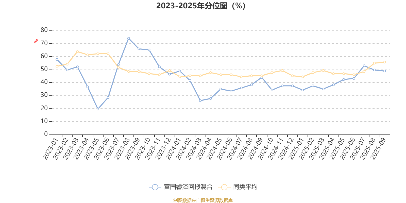 通过所选区间该基金净值增长率分位图,可以观察该基金与同类基金业绩比较情况。图为坐标原点到区间内某时点的净值增长率在同类基金中的分位数。