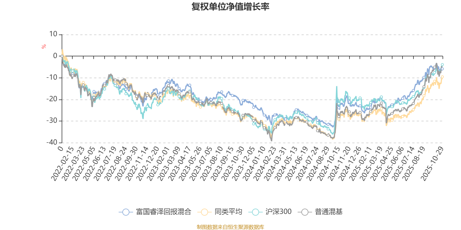 截至10月29日,富国睿泽回报混合近三个月复权单位净值增长率为5.77%,位于同类可比基金99/134;近半年复权单位净值增长率为21.96%,位于同类可比基金65/134;近一年复权单位净值增长率为21.20%,位于同类可比基金64/130;近三年复权单位净值增长率为21.91%,位于同类可比基金57/119。