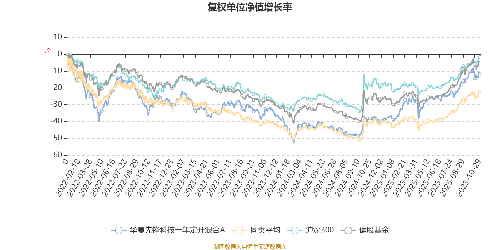 截至10月29日,华夏先锋科技一年定开混合A近三个月复权单位净值增长率为14.23%,位于同类可比基金319/621;近半年复权单位净值增长率为23.93%,位于同类可比基金416/621;近一年复权单位净值增长率为41.90%,位于同类可比基金177/611;近三年复权单位净值增长率为28.77%,位于同类可比基金191/518。