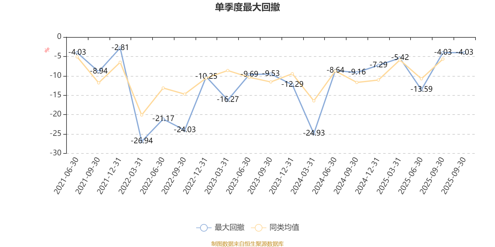 截至10月28日,基金近三年最大回撤为39.35%,同类可比基金排名338/513。单季度最大回撤出现在2022年一季度,为26.94%。