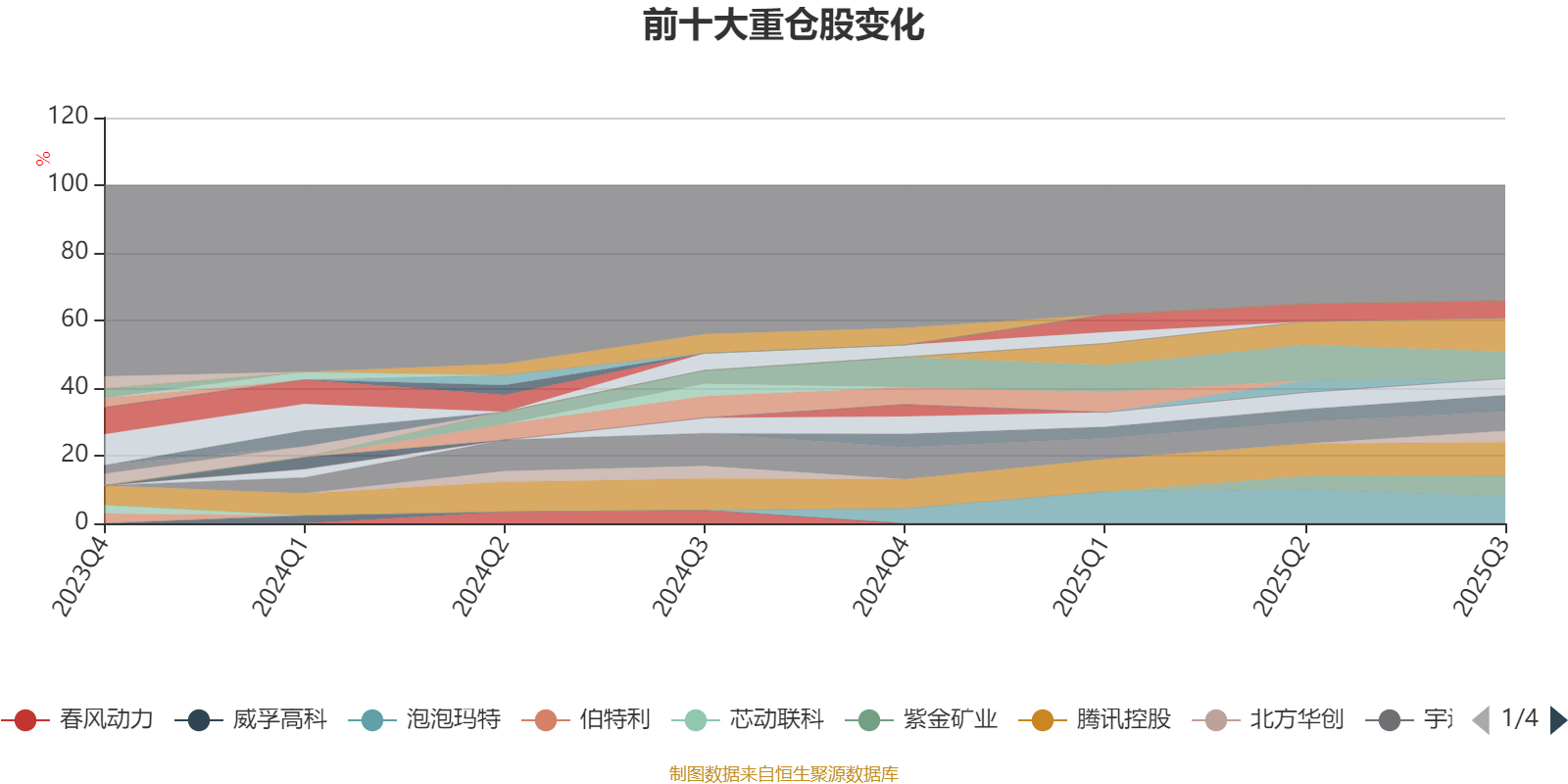 截至2025年三季度末,基金十大重仓股分别是腾讯控股、中芯国际、泡泡玛特、小米集团-W、紫金矿业、宇通客车、拓普集团、福耀玻璃、宁德时代、北方华创。
