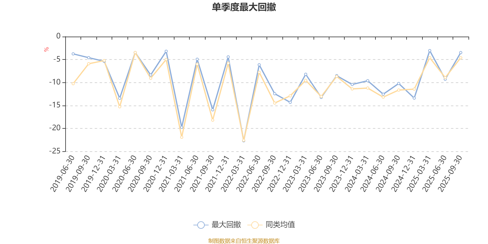 通过所选区间该基金净值增长率分位图,可以观察该基金与同类基金业绩比较情况。图为坐标原点到区间内某时点的净值增长率在同类基金中的分位数。