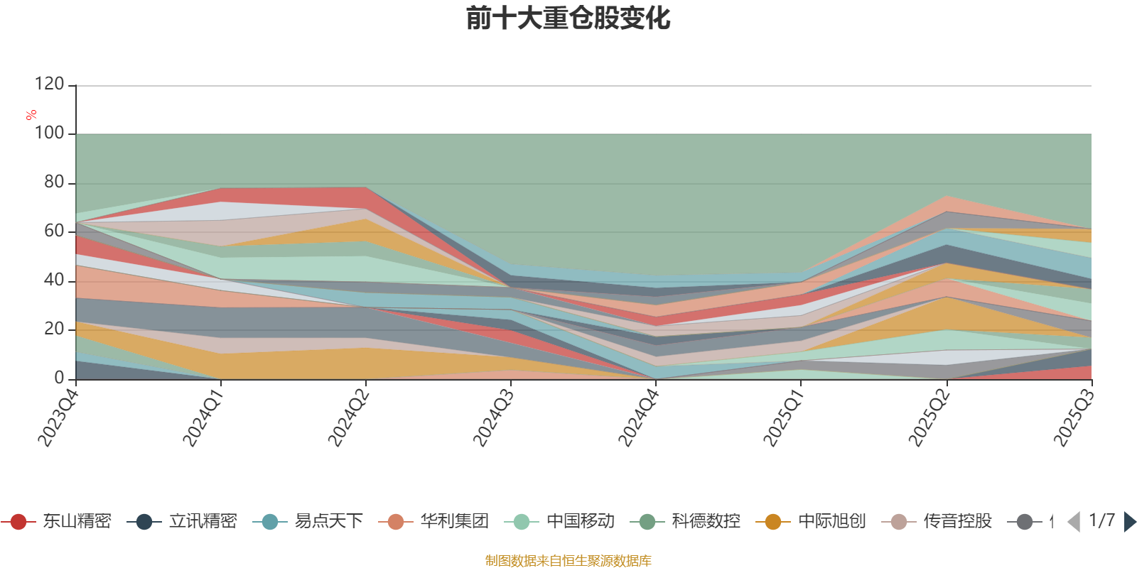 截至2025年三季度末,基金十大重仓股分别是恒瑞医药、药明康德、立讯精密、宁德时代、沪电股份、徐工机械、工业富联、东山精密、德科立、恺英网络。