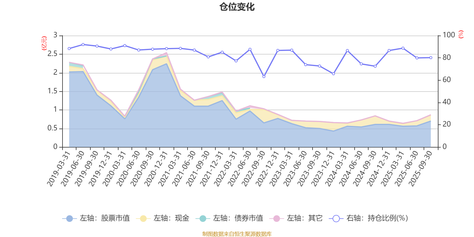 据定期报告数据统计,近三年平均股票仓位为79.58%,同类平均为72.35%。2019年上半年末基金达到91.94%的最高仓位,2022年三季度末最低,为63.22%。