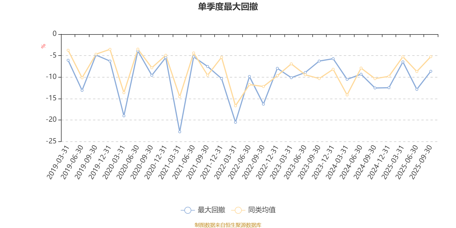 通过所选区间该基金净值增长率分位图,可以观察该基金与同类基金业绩比较情况。图为坐标原点到区间内某时点的净值增长率在同类基金中的分位数。
