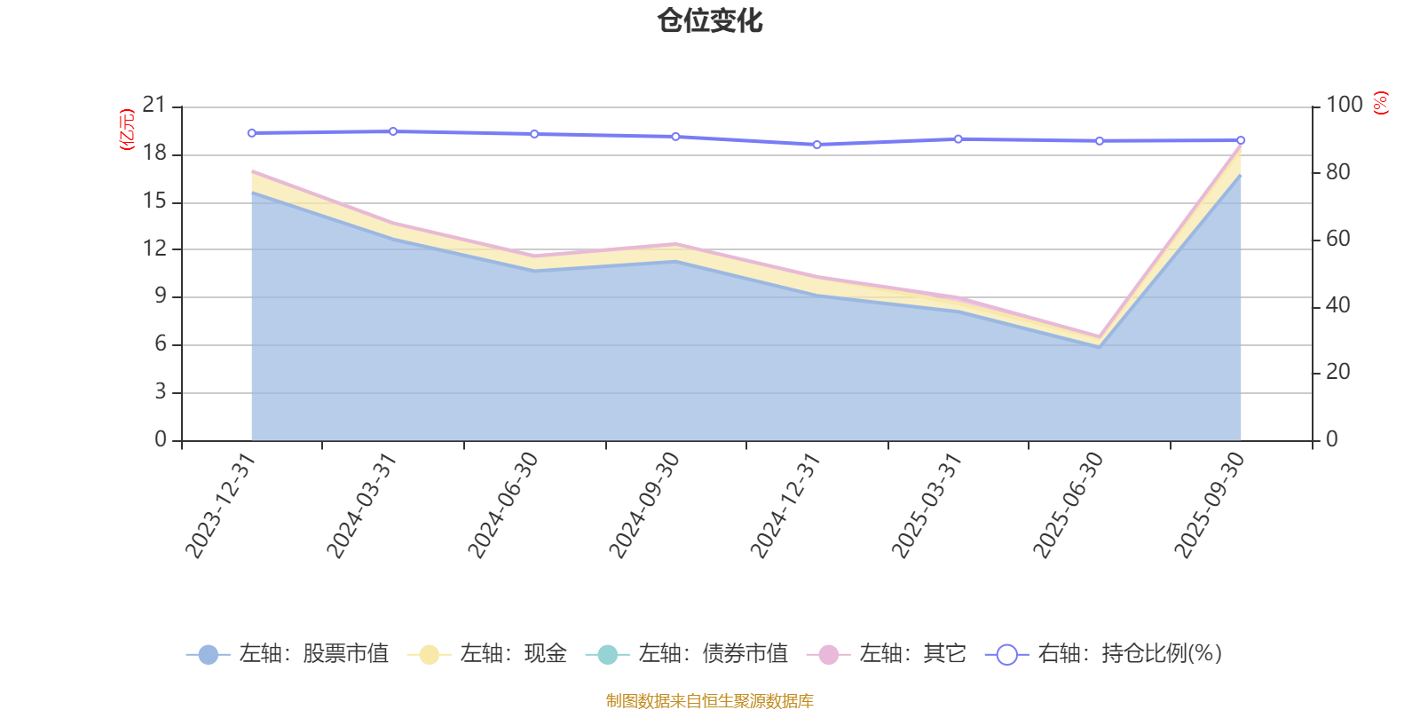 据定期报告数据统计,成立以来平均股票仓位为90.73%,同类平均为85.66%。2024年一季度末基金达到92.57%的最高仓位,2024年末最低,为88.57%。