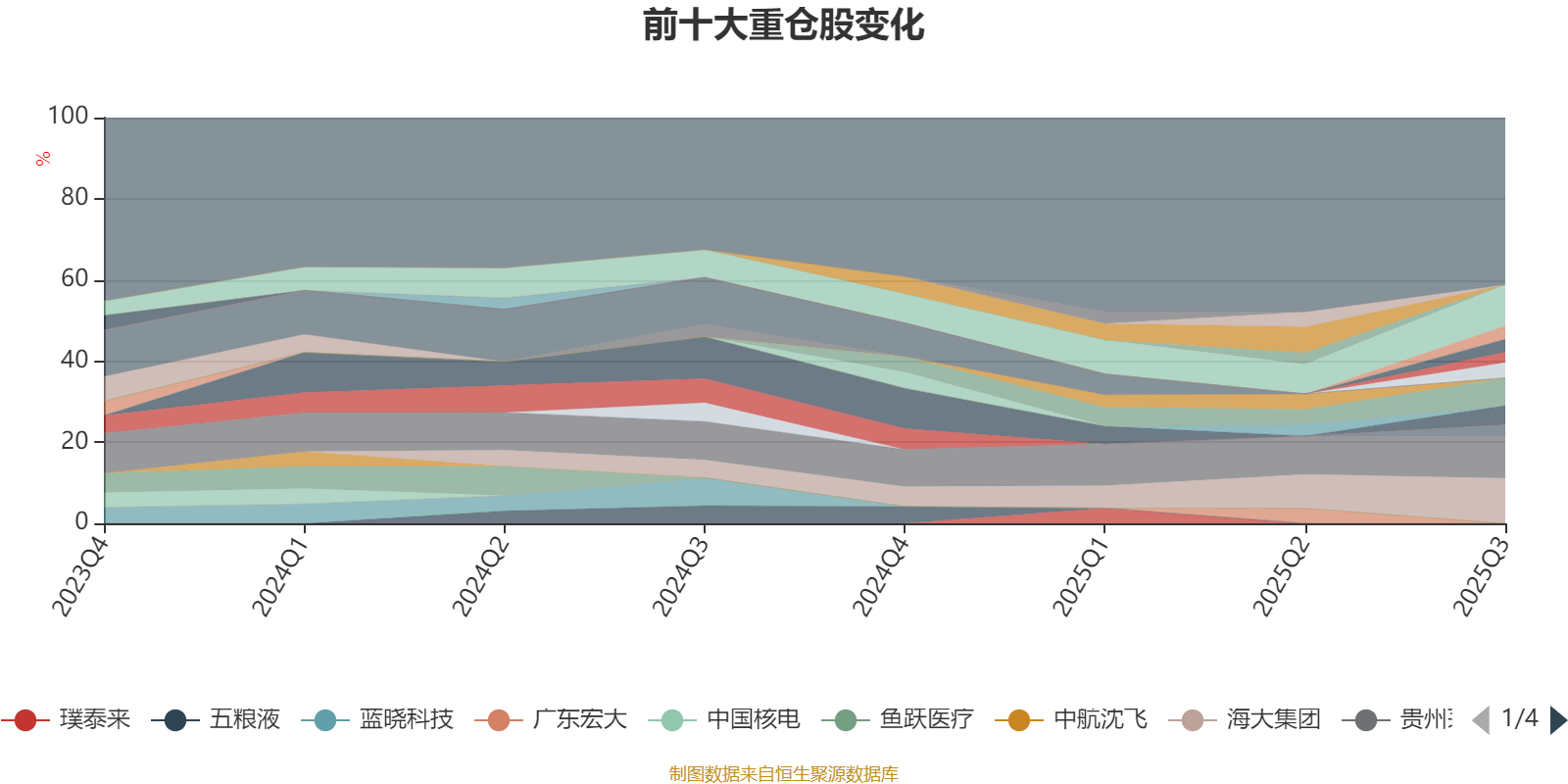 该基金持股集中度较高。截至2025年三季度末,基金十大重仓股分别是海大集团、贵州茅台、宁波银行、徐工机械、万华化学、金风科技、华通线缆、滨江集团、科达利、航天电子。