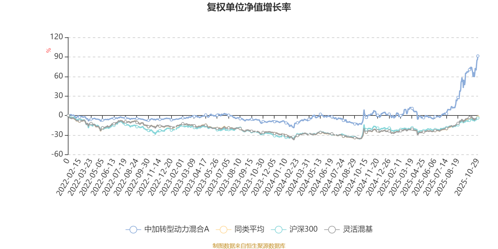 截至10月29日,中加转型动力混合A近三个月复权单位净值增长率为67.91%,位于同类可比基金2/1287;近半年复权单位净值增长率为97.45%,位于同类可比基金24/1287;近一年复权单位净值增长率为87.69%,位于同类可比基金34/1287;近三年复权单位净值增长率为104.90%,位于同类可比基金23/1286。