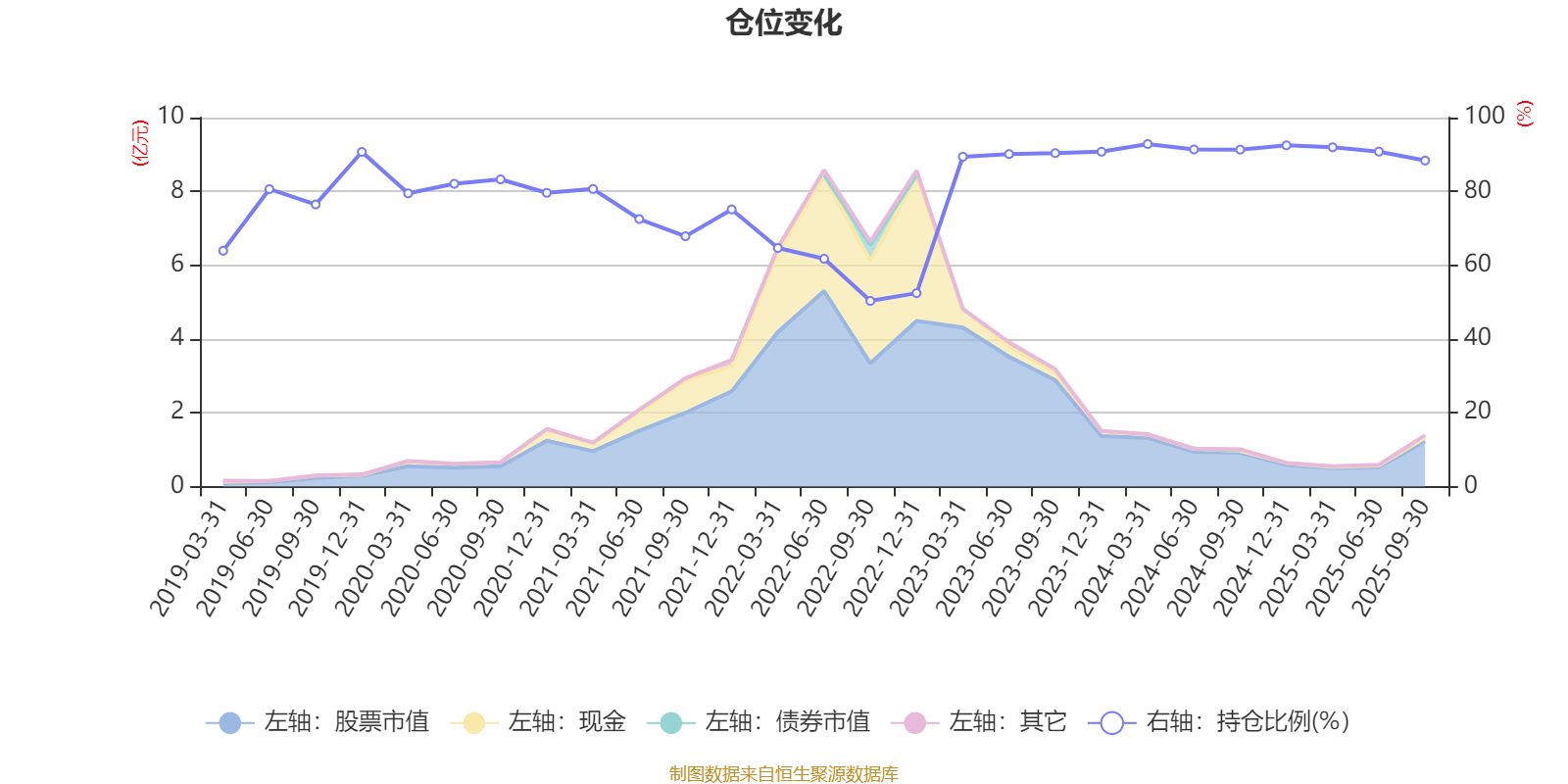 据定期报告数据统计,近三年平均股票仓位为87.68%,同类平均为72.35%。2024年一季度末基金达到92.84%的最高仓位,2022年三季度末最低,为50.31%。