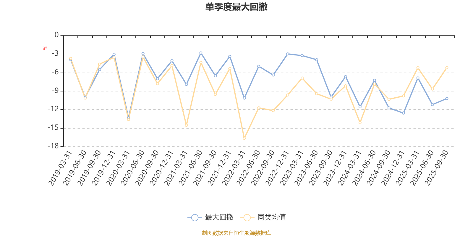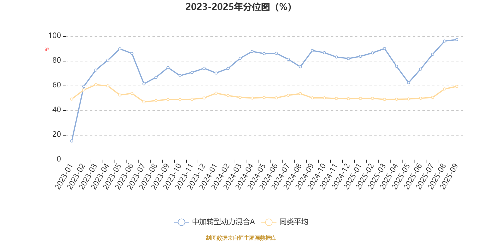 通过所选区间该基金净值增长率分位图,可以观察该基金与同类基金业绩比较情况。图为坐标原点到区间内某时点的净值增长率在同类基金中的分位数。