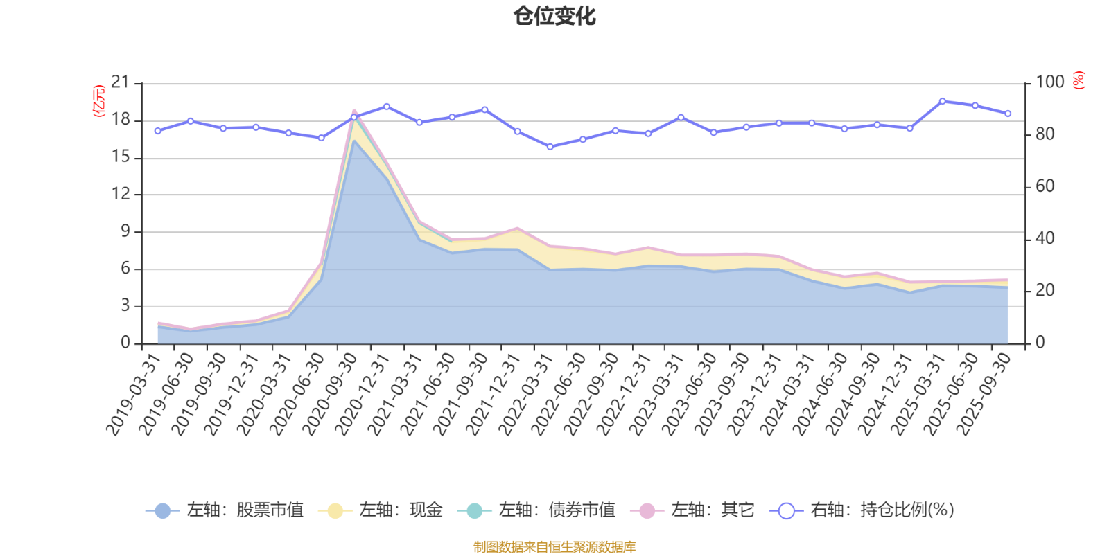 据定期报告数据统计,近三年平均股票仓位为85.24%,同类平均为86.91%。2025年一季度末基金达到93.06%的最高仓位,2022年一季度末最低,为75.6%。