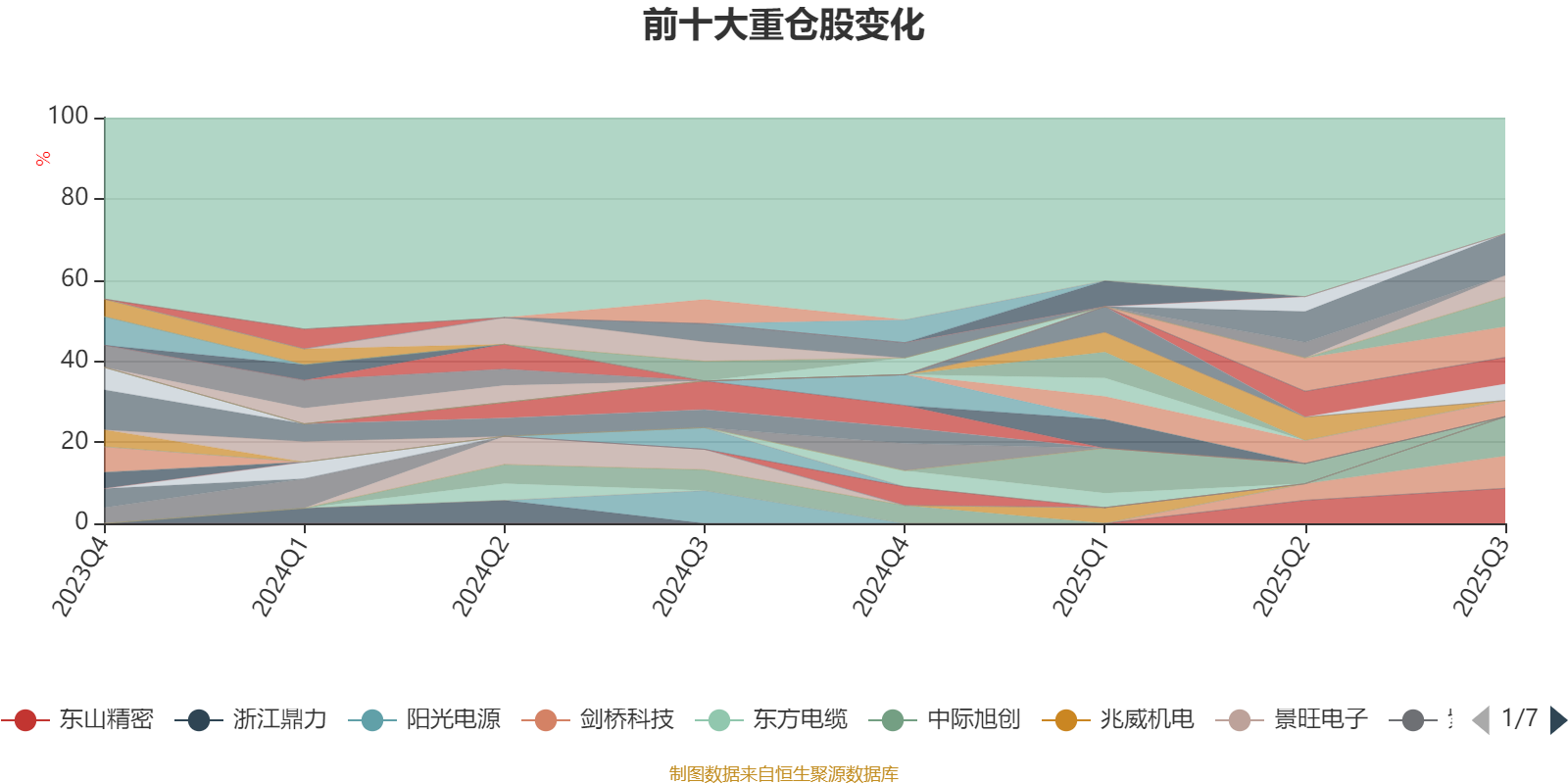 截至2025年三季度末,基金十大重仓股分别是新易盛、中际旭创、东山精密、剑桥科技、胜宏科技、阿里巴巴-W、沪电股份、工业富联、生益电子、麦格米特。