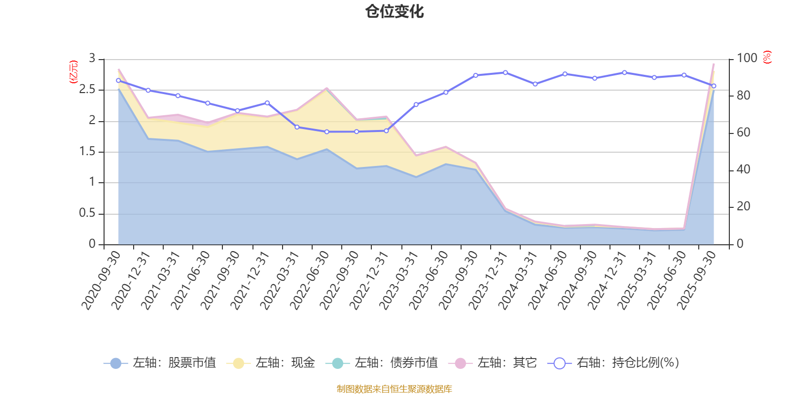 据定期报告数据统计,近三年平均股票仓位为85.91%,同类平均为83.73%。2024年末基金达到92.75%的最高仓位,2022年上半年末最低,为60.8%。