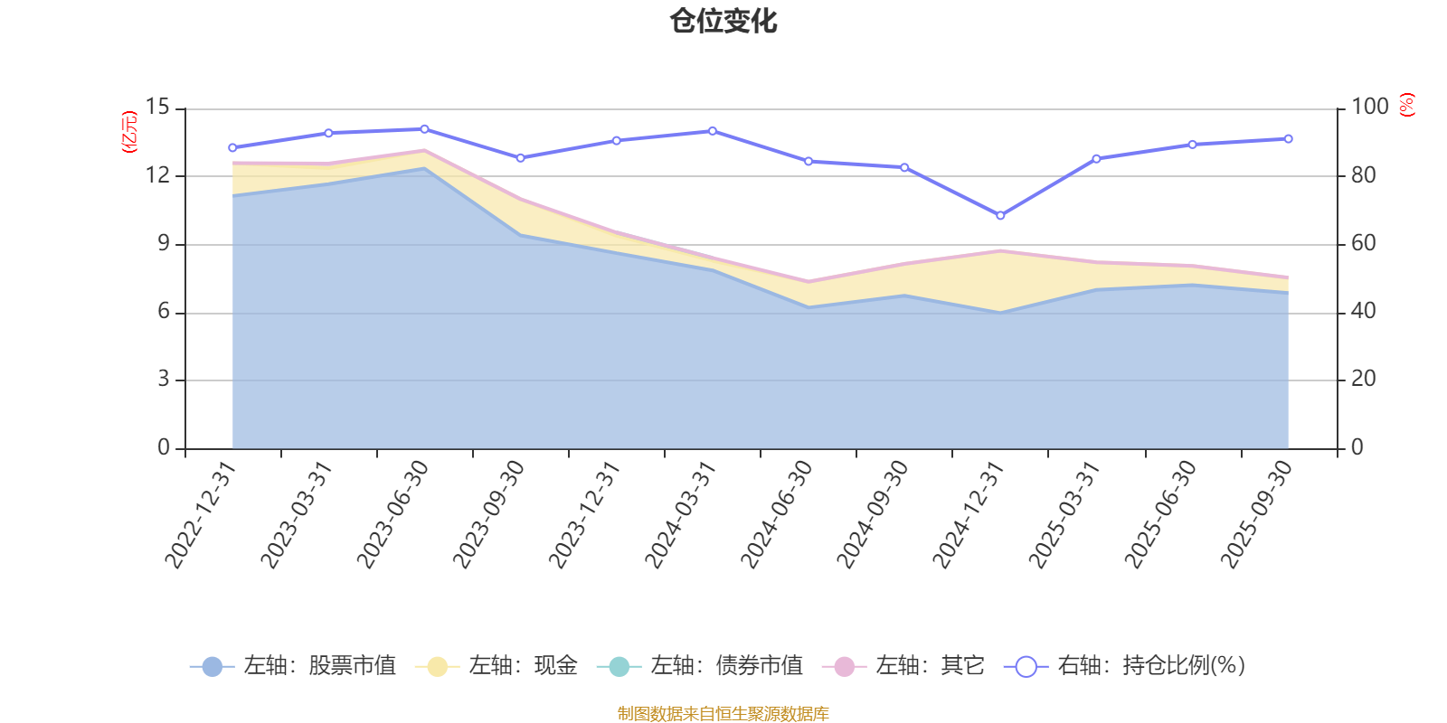 据定期报告数据统计,近三年平均股票仓位为87.16%,同类平均为85.99%。2023年上半年末基金达到93.94%的最高仓位,2024年末最低,为68.56%。