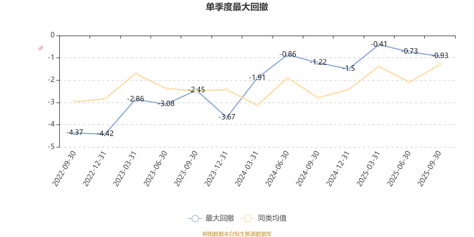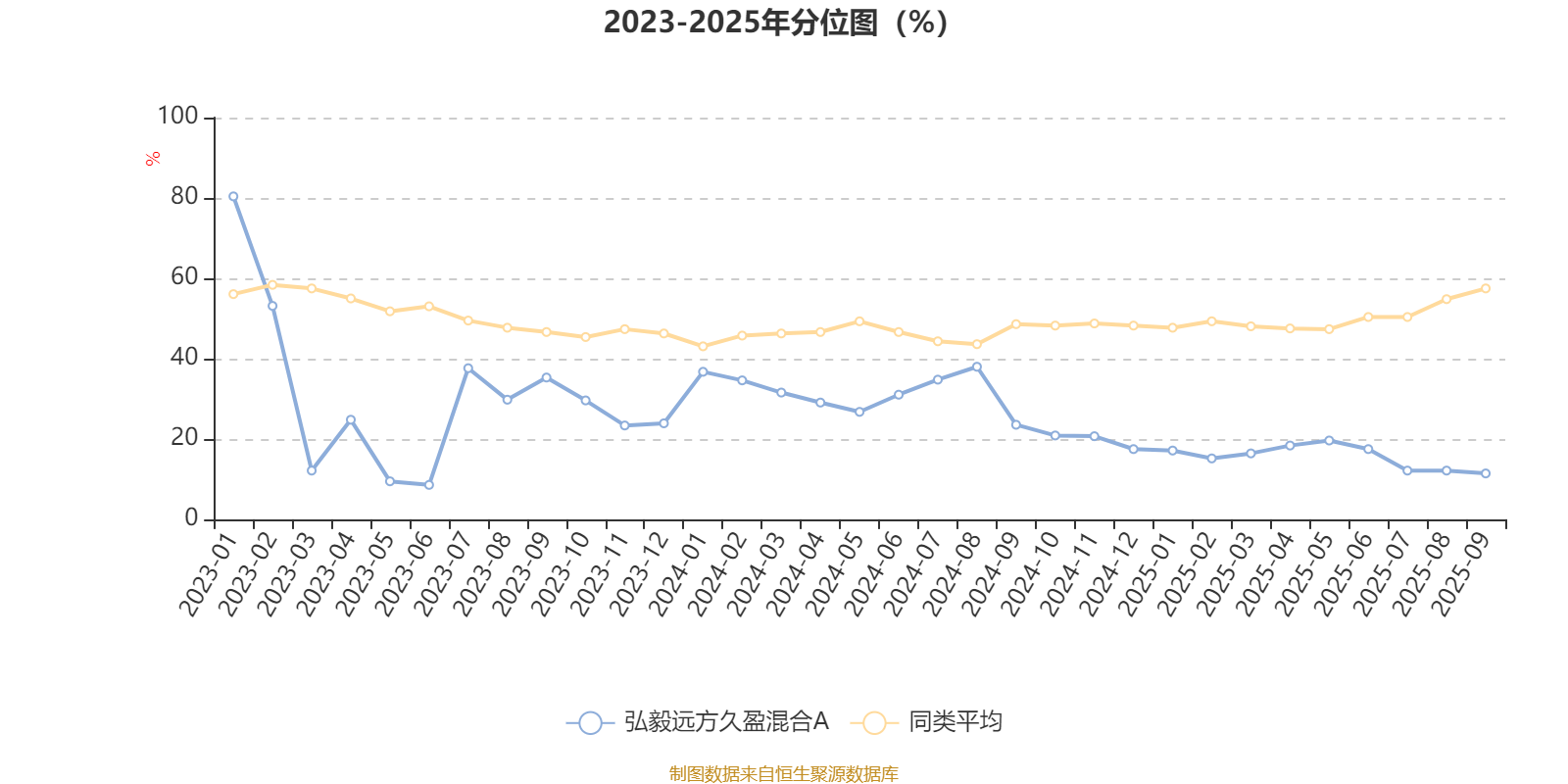 通过所选区间该基金净值增长率分位图,可以观察该基金与同类基金业绩比较情况。图为坐标原点到区间内某时点的净值增长率在同类基金中的分位数。