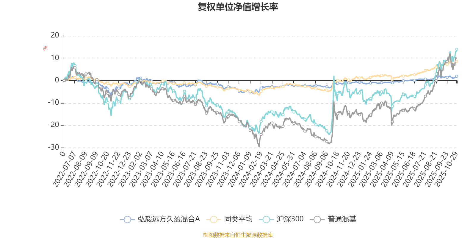 截至10月29日,弘毅远方久盈混合A近三个月复权单位净值增长率为1.53%,位于同类可比基金454/629;近半年复权单位净值增长率为2.64%,位于同类可比基金533/629;近一年复权单位净值增长率为3.37%,位于同类可比基金570/623;近三年复权单位净值增长率为8.95%,位于同类可比基金391/557。