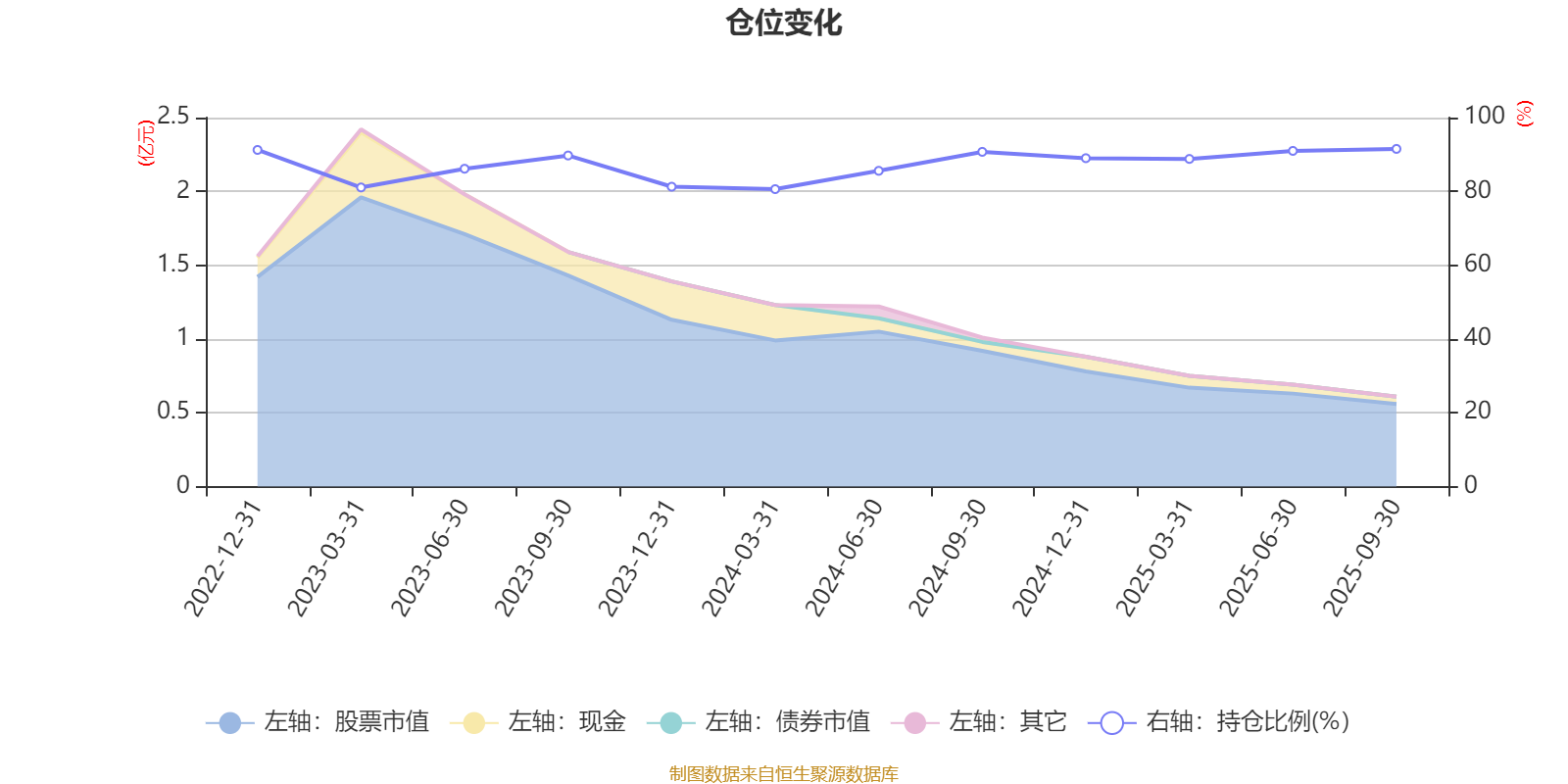 据定期报告数据统计,近三年平均股票仓位为87.22%,同类平均为86.77%。2025年三季度末基金达到91.52%的最高仓位,2024年一季度末最低,为80.61%。
