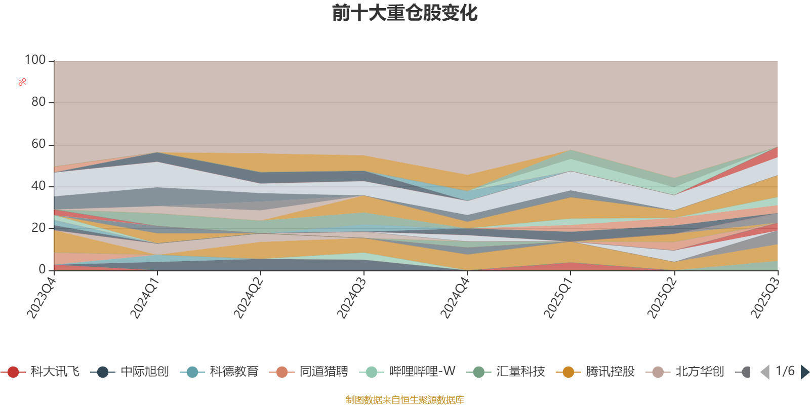 截至2025年三季度末,基金十大重仓股分别是阿里巴巴-W、快手-W、腾讯控股、ST华通、亚信科技、寒武纪、汇量科技、英维克、中芯国际、芯原股份。