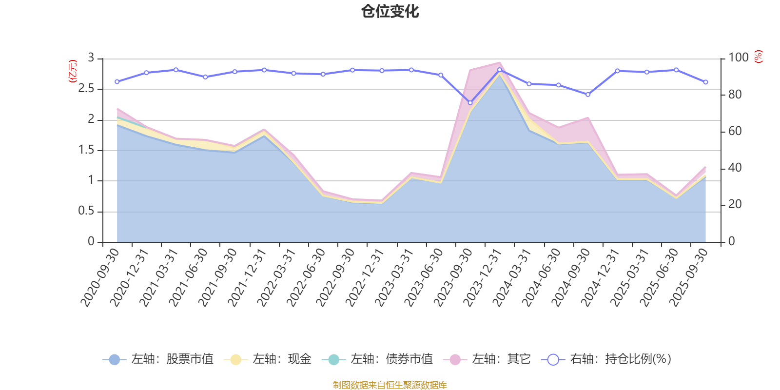 据定期报告数据统计,近三年平均股票仓位为88.9%,同类平均为83.73%。2023年末基金达到93.87%的最高仓位,2023年三季度末最低,为75.87%。