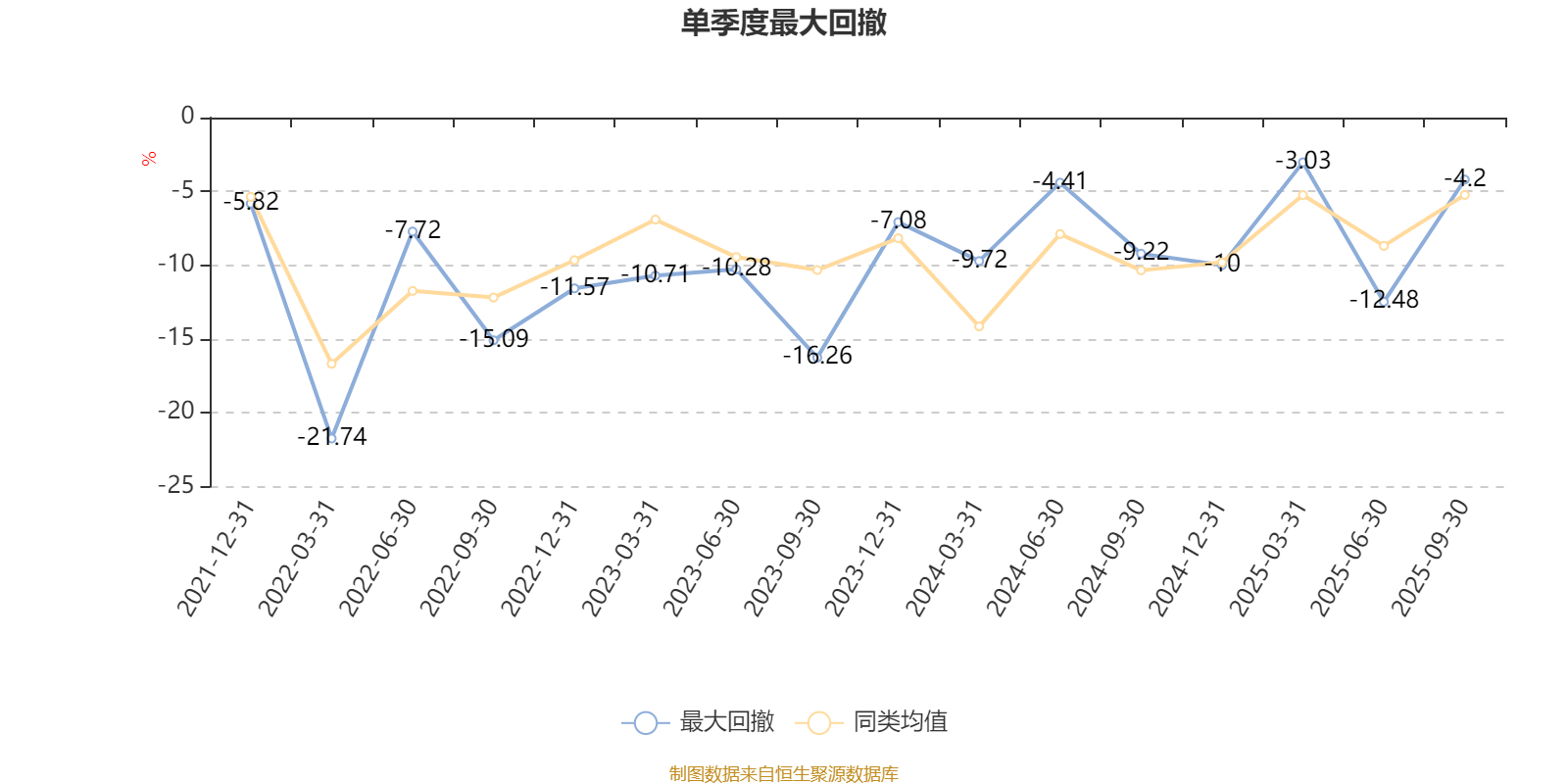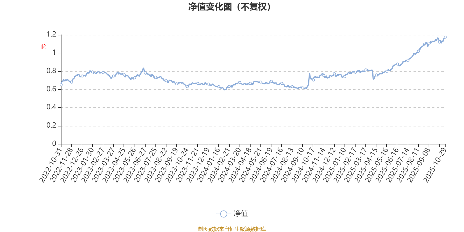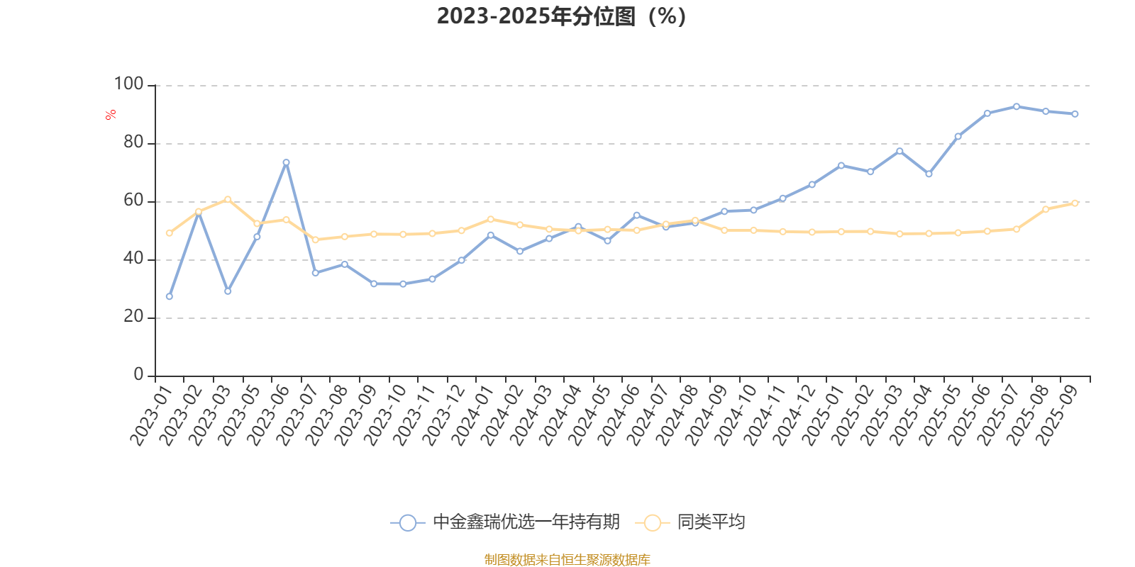 通过所选区间该基金净值增长率分位图,可以观察该基金与同类基金业绩比较情况。图为坐标原点到区间内某时点的净值增长率在同类基金中的分位数。
