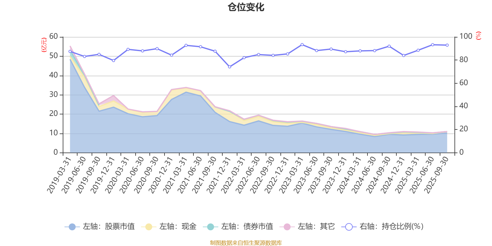 据定期报告数据统计,近三年平均股票仓位为89.18%,同类平均为72.35%。2023年一季度末基金达到93.35%的最高仓位,2021年末最低,为74.12%。