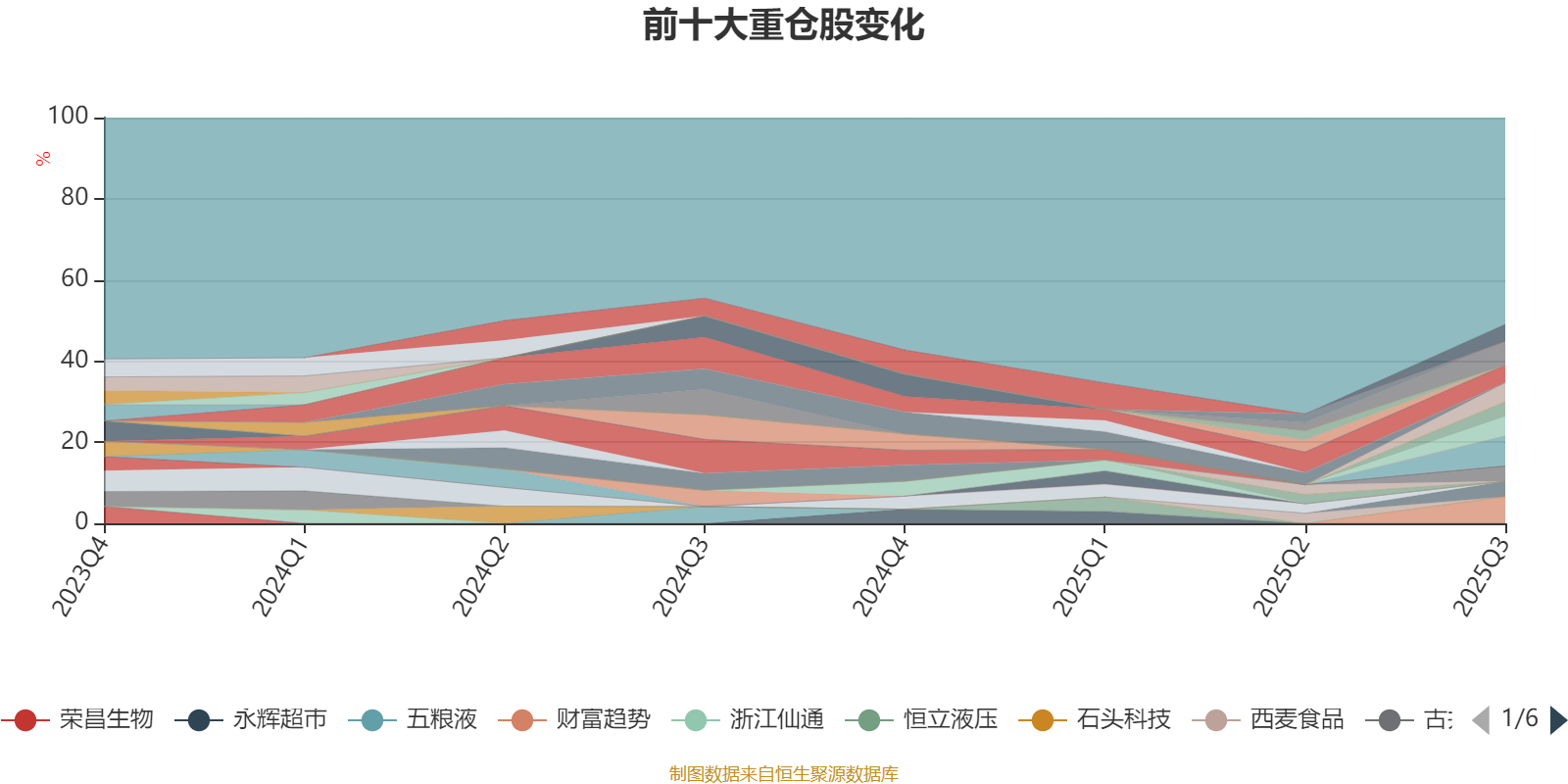 截至2025年三季度末,基金十大重仓股分别是科华数据、财富趋势、昭衍新药、指南针、佳讯飞鸿、恒瑞医药、益诺思、开特股份、阿特斯、药明康德。