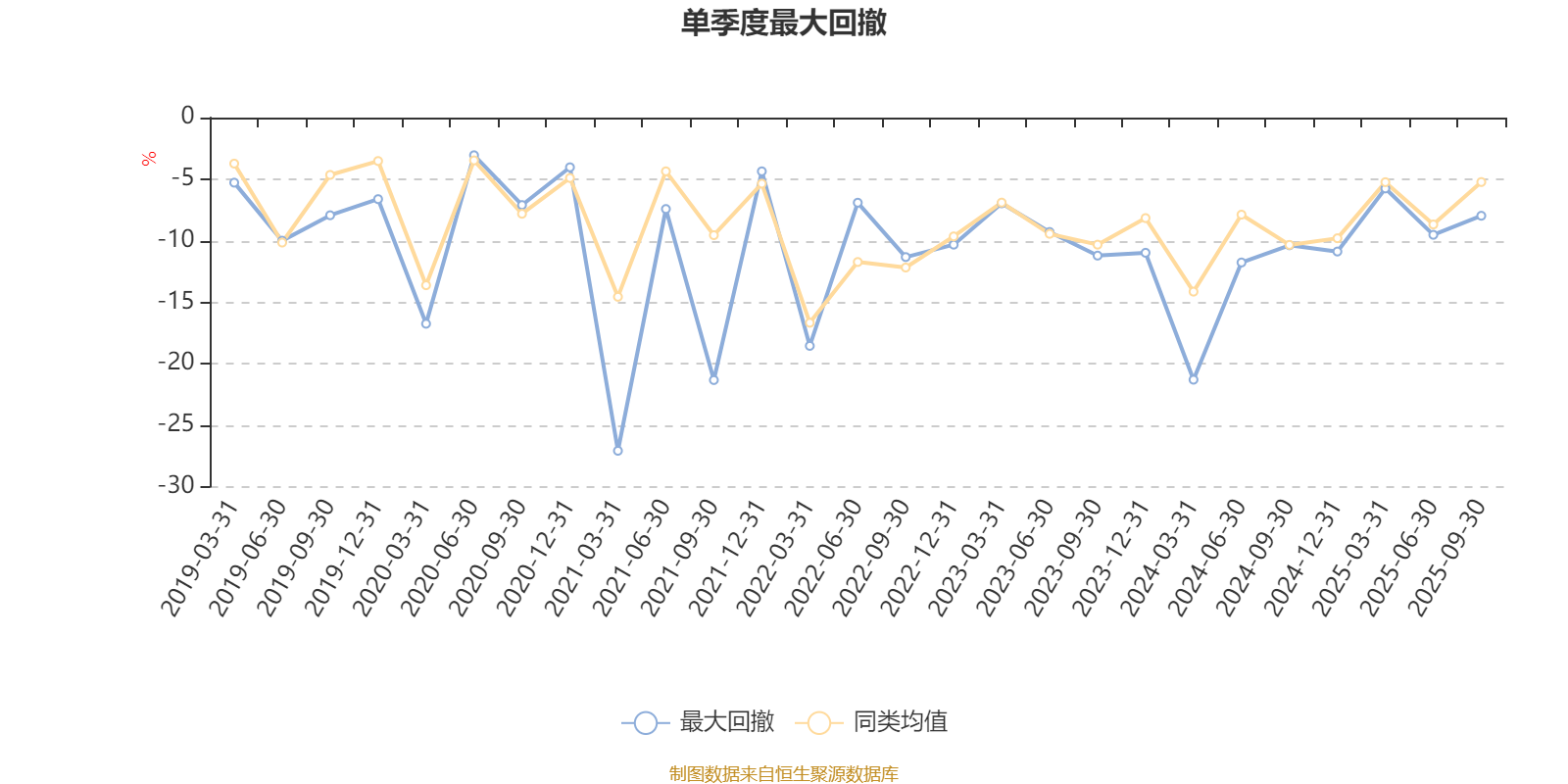 截至10月28日,基金近三年最大回撤为41.64%,同类可比基金排名971/1274。单季度最大回撤出现在2021年一季度,为27.09%。