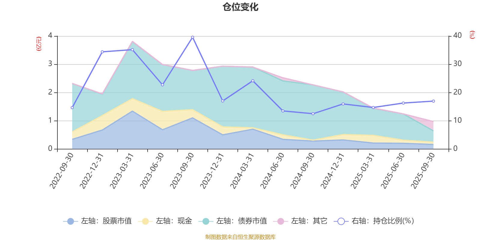 据定期报告数据统计,近三年平均股票仓位为21.89%,同类平均为19.14%。2023年三季度末基金达到39.57%的最高仓位,2024年三季度末最低,为12.48%。