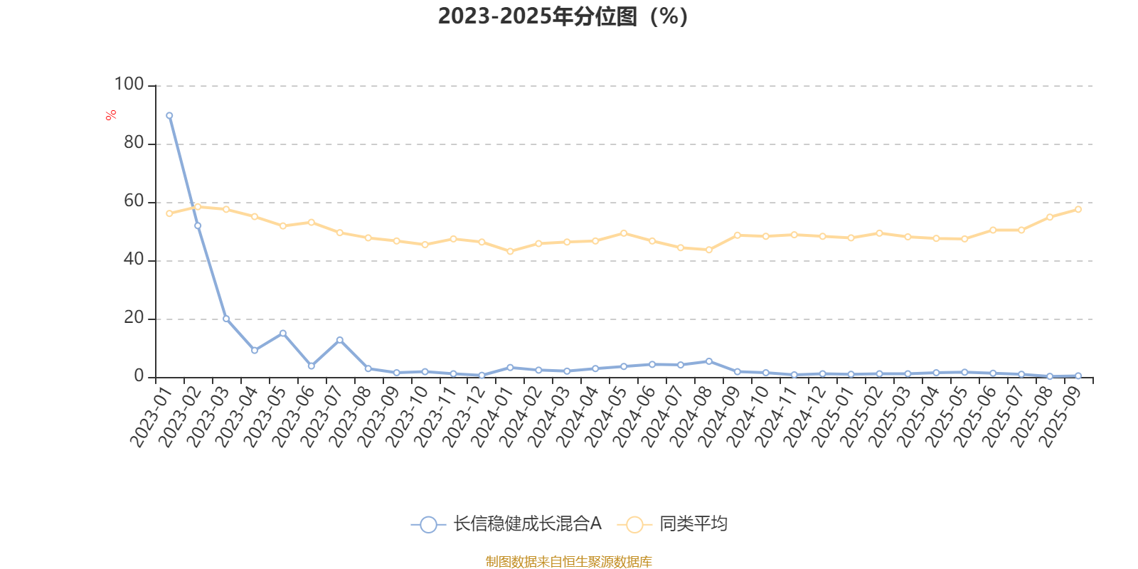 通过所选区间该基金净值增长率分位图,可以观察该基金与同类基金业绩比较情况。图为坐标原点到区间内某时点的净值增长率在同类基金中的分位数。