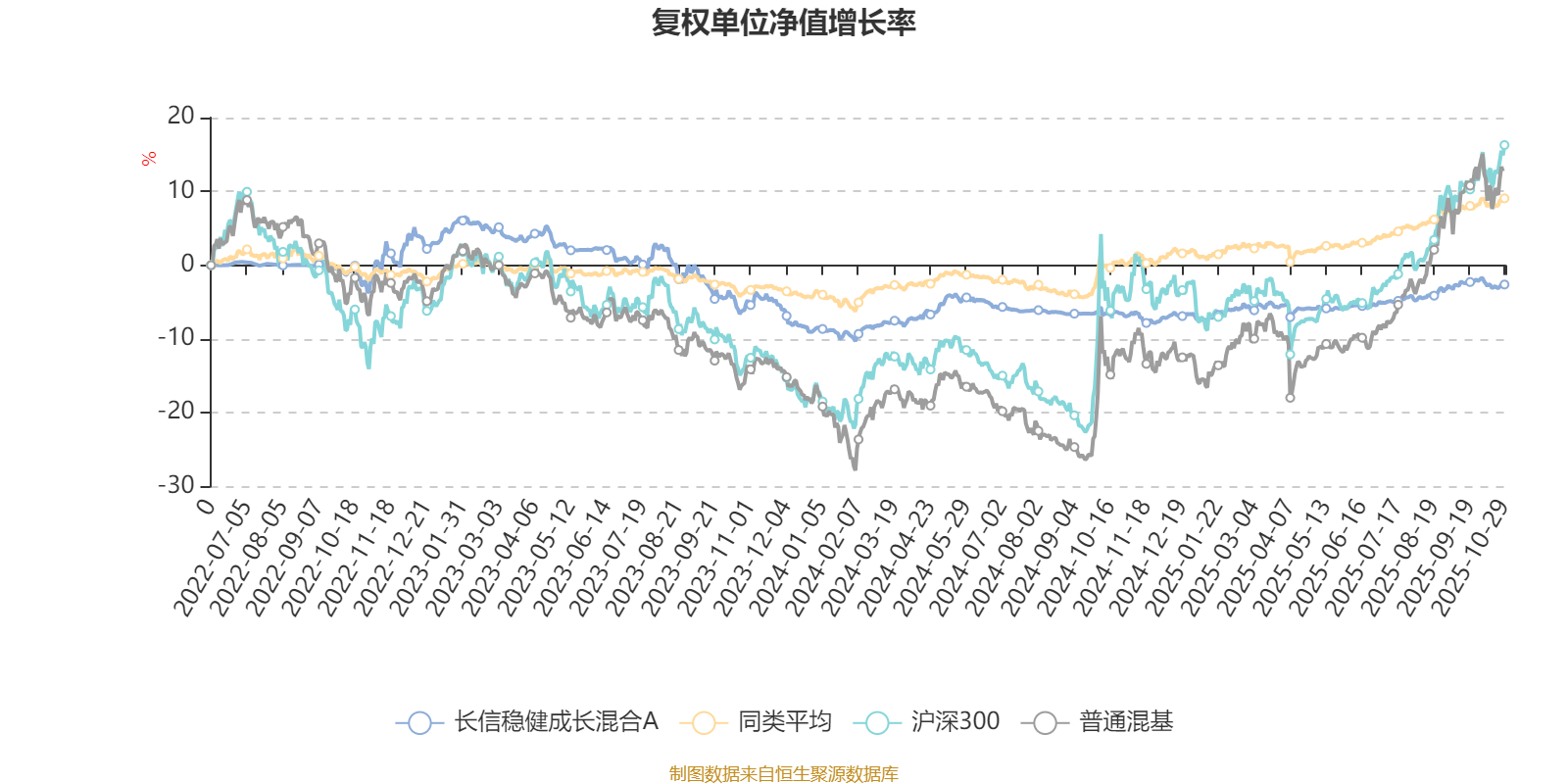 截至10月29日,长信稳健成长混合A近三个月复权单位净值增长率为1.56%,位于同类可比基金449/629;近半年复权单位净值增长率为3.49%,位于同类可比基金476/629;近一年复权单位净值增长率为4.56%,位于同类可比基金506/623;近三年复权单位净值增长率为1.01%,位于同类可比基金524/557。