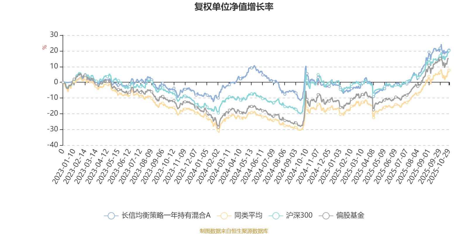 截至10月29日,长信均衡策略一年持有混合A近三个月复权单位净值增长率为14.58%,位于同类可比基金315/689;近半年复权单位净值增长率为27.03%,位于同类可比基金365/688;近一年复权单位净值增长率为19.33%,位于同类可比基金469/657。