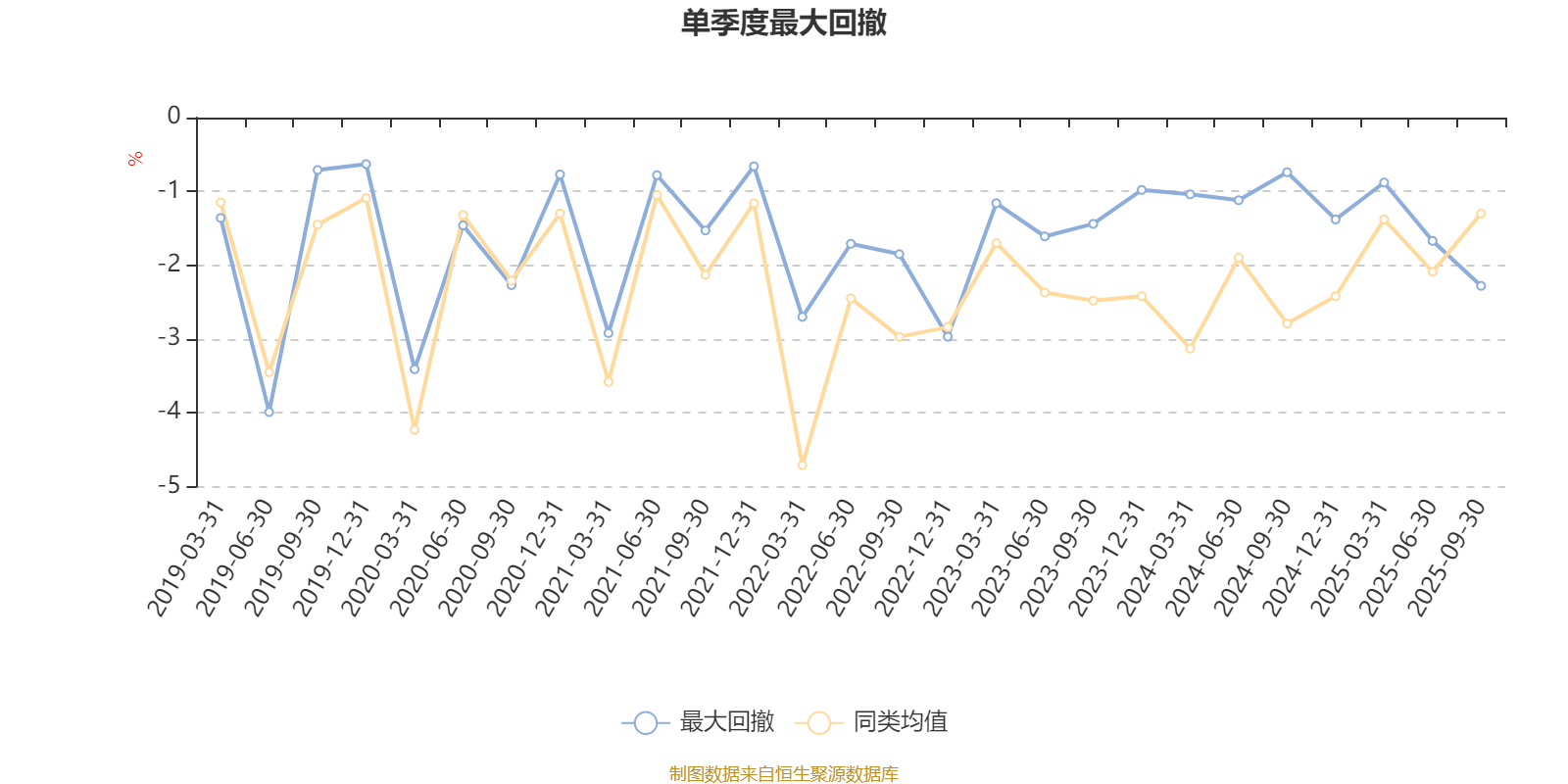 截至10月28日,基金近三年最大回撤为2.97%,同类可比基金排名55/535。单季度最大回撤出现在2019年二季度,为3.99%。