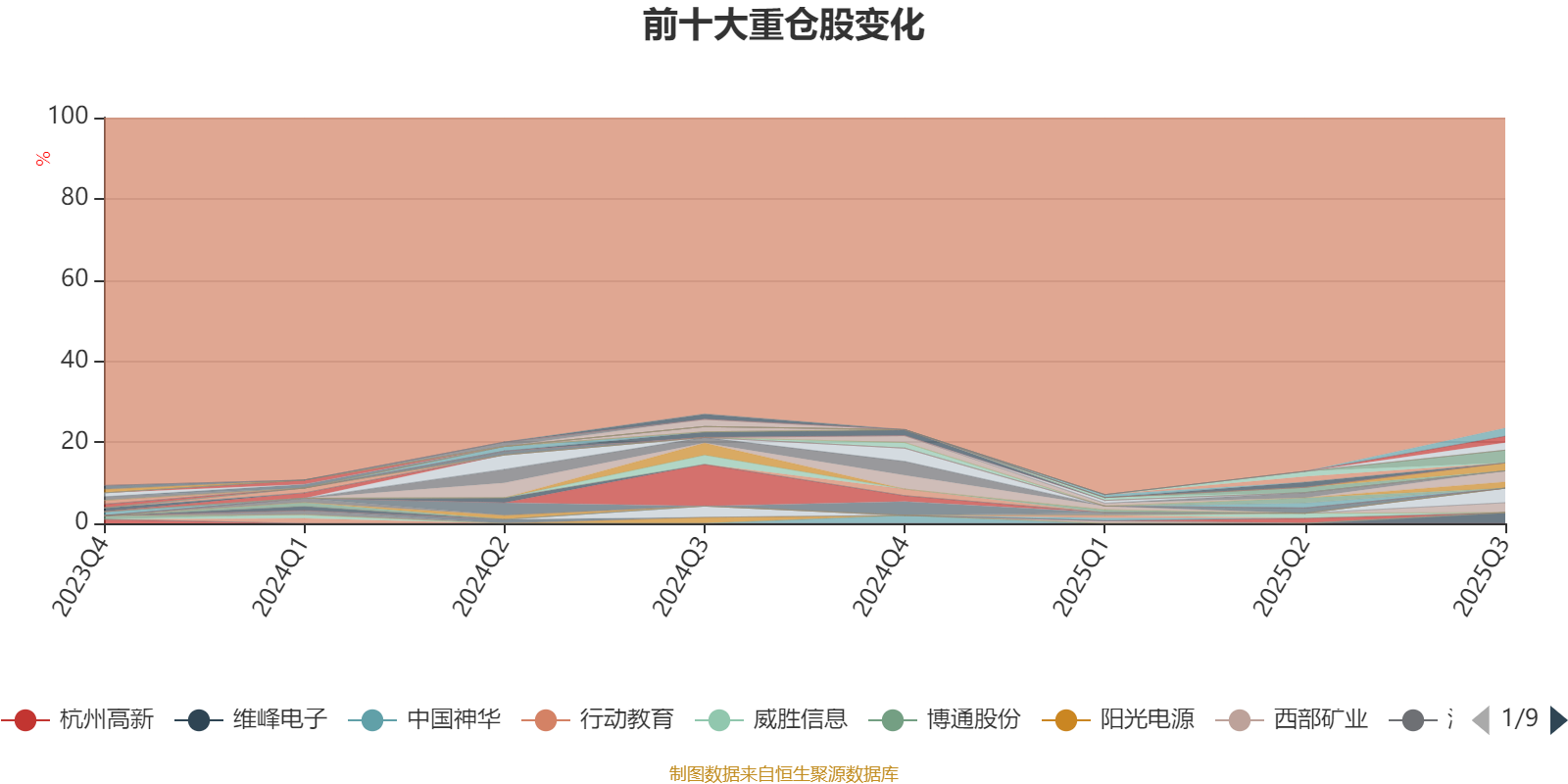 截至2025年三季度末,基金十大重仓股分别是广发证券、双汇发展、光大银行、维峰电子、交通银行、中国中铁、中金公司、珠城科技、安克创新、瑞丰新材。